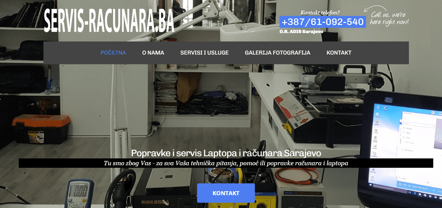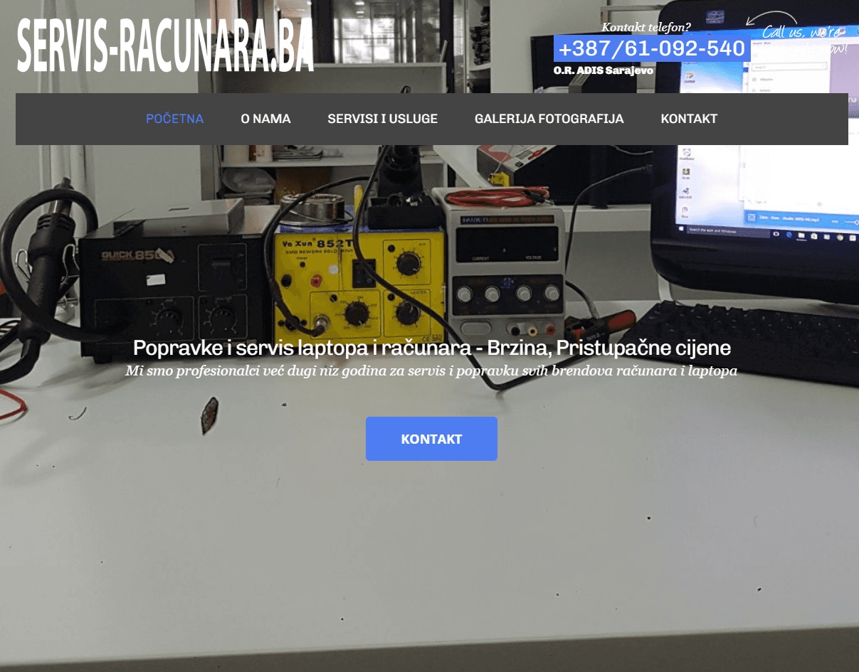 Clear headline positioning the business as the first mobile computer repair service in Sarajevo